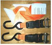 · 25mm close weave webbing · Heavy duty solid core ratchets · Soft grips over ratchet handles · Plastic coated heavy duty S hooks · Solid metal centre core ratchets